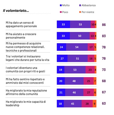 Il volontariato per sé (In che misura sei d’accordo con le seguenti affermazioni riguardo alla sua esperienza di volontariato? Base: Svolge o svolgeva volontariato – Valori %)